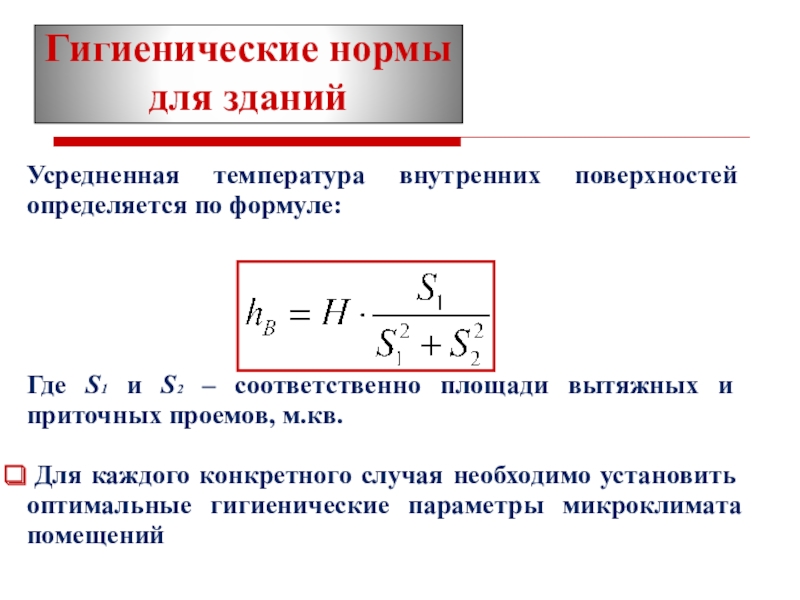 Для каждого конкретного случая необходимо установить оптимальные гигиенические параметры микроклимата помещений