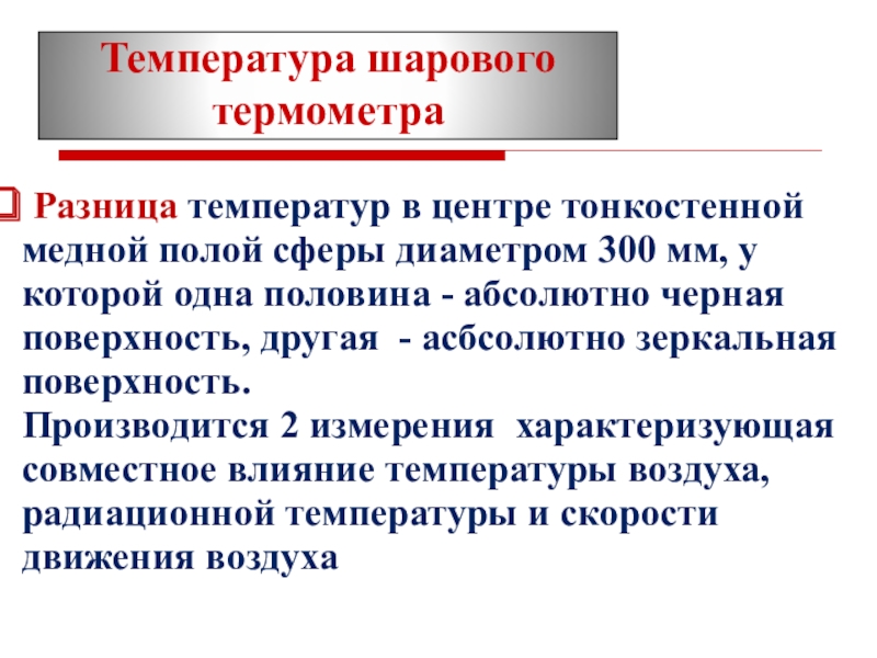 Слайд 12 разность результирующих температур в точке помещения, определенных шаровым термометром
