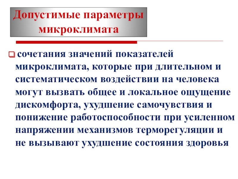 сочетания значений показателей микроклимата, которые при длительном и систематическом