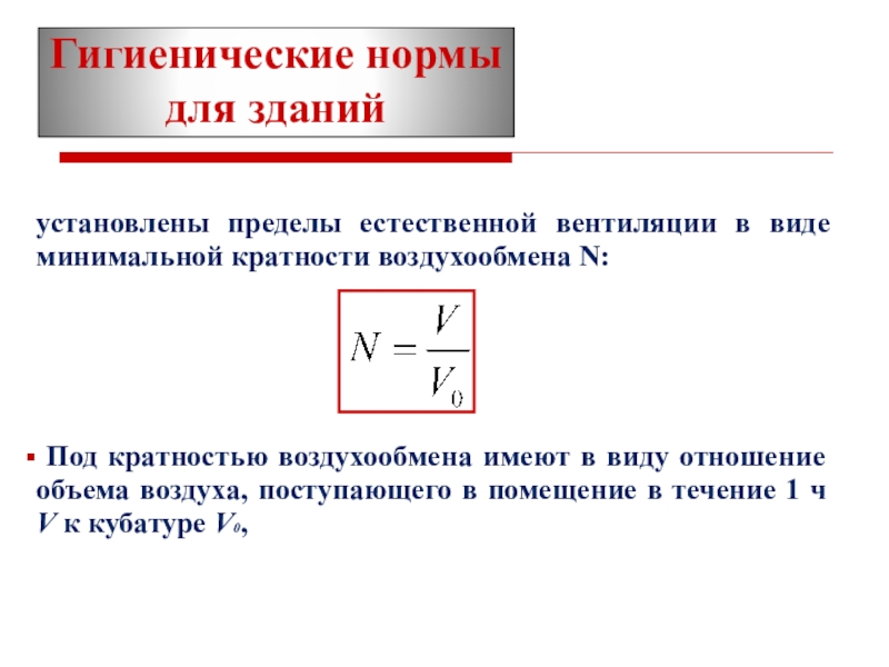 отношение объема воздуха, поступающего в помещение в течение 1 ч V к кубатуре V0,