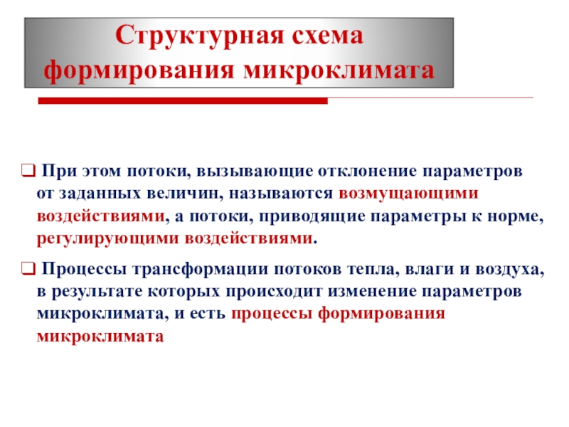 Процессы трансформации потоков тепла, влаги и воздуха, в результате которых происходит изменение параметров микроклимата, и есть процессы формирования микроклимата