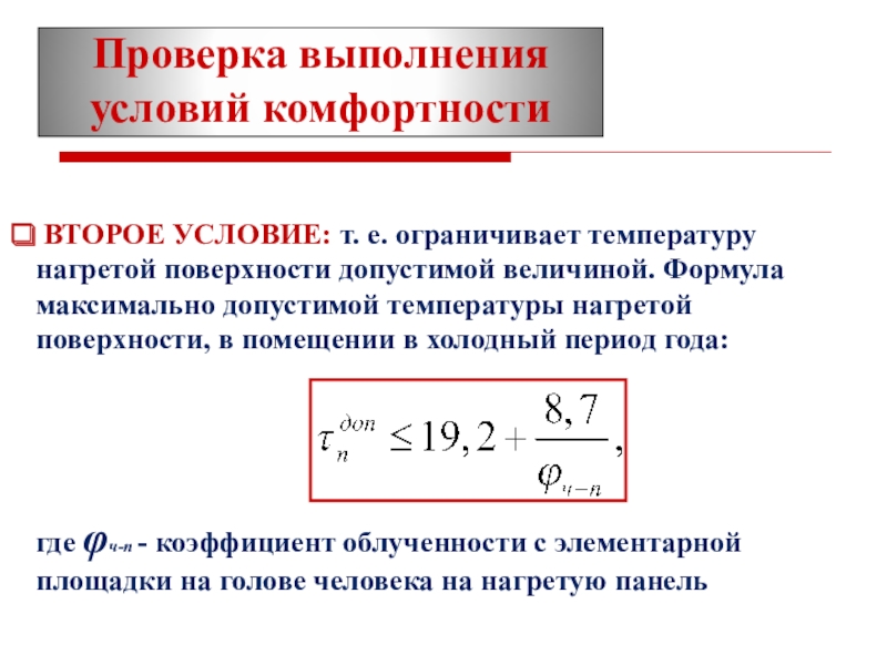 ВТОРОЕ УСЛОВИЕ: т. е. ограничивает температуру нагретой поверхности допустимой