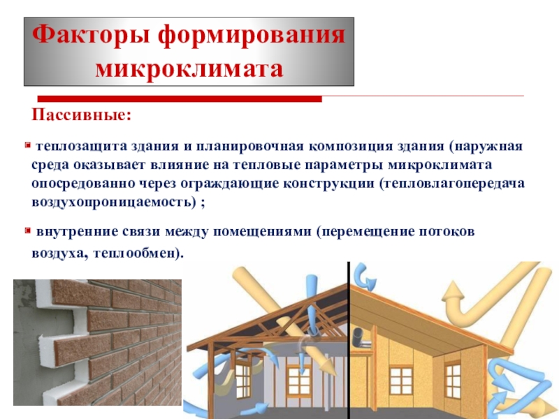 внутренние связи между помещениями (перемещение потоков воздуха, теплообмен).