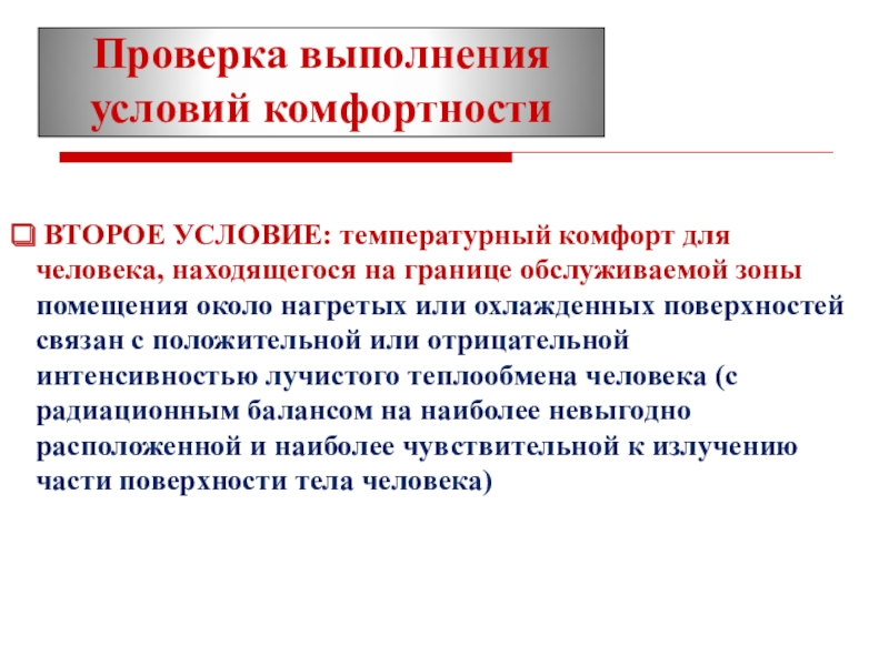 ВТОРОЕ УСЛОВИЕ: температурный комфорт для человека, находящегося на границе