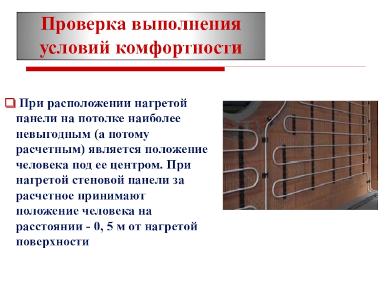 При расположении нагретой панели на потолке наиболее невыгодным (а