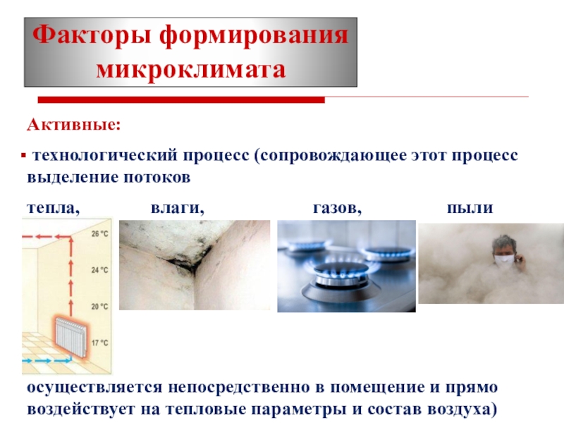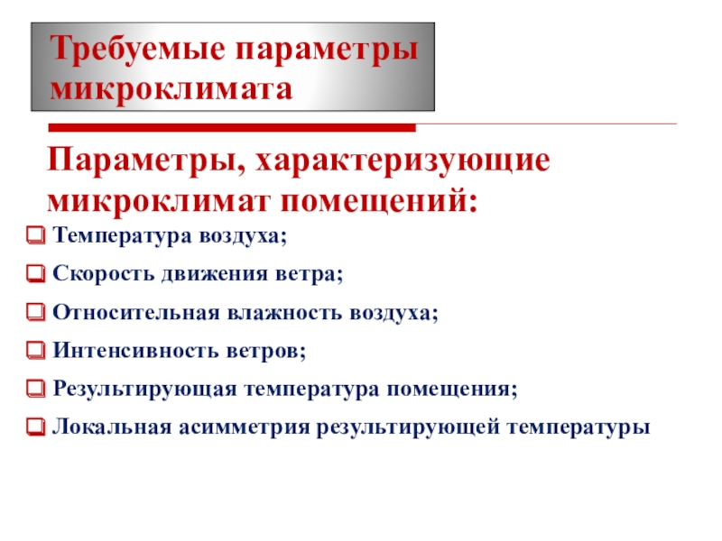 Слайд 5Параметры, характеризующие микроклимат помещений:
