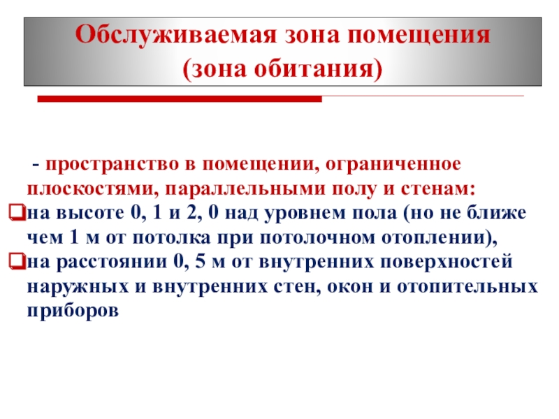 обслуживаемой зоны помещения около нагретых или охлажденных поверхностей связан с