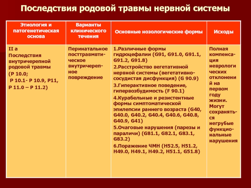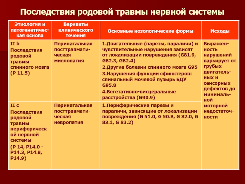Слайд 1Классификация последствий перинатальных поражений нервной системы у детей первого года