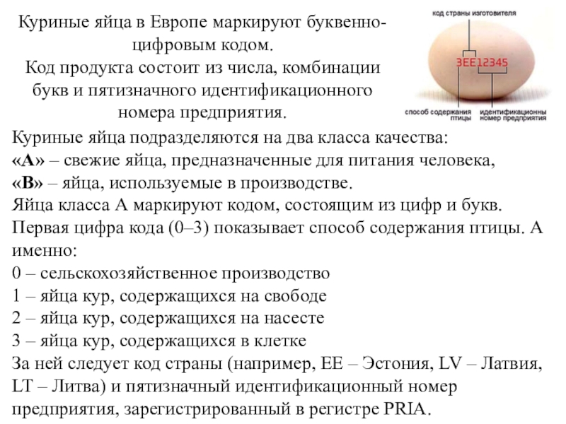 Яйца класса А маркируют кодом, состоящим из цифр и букв.