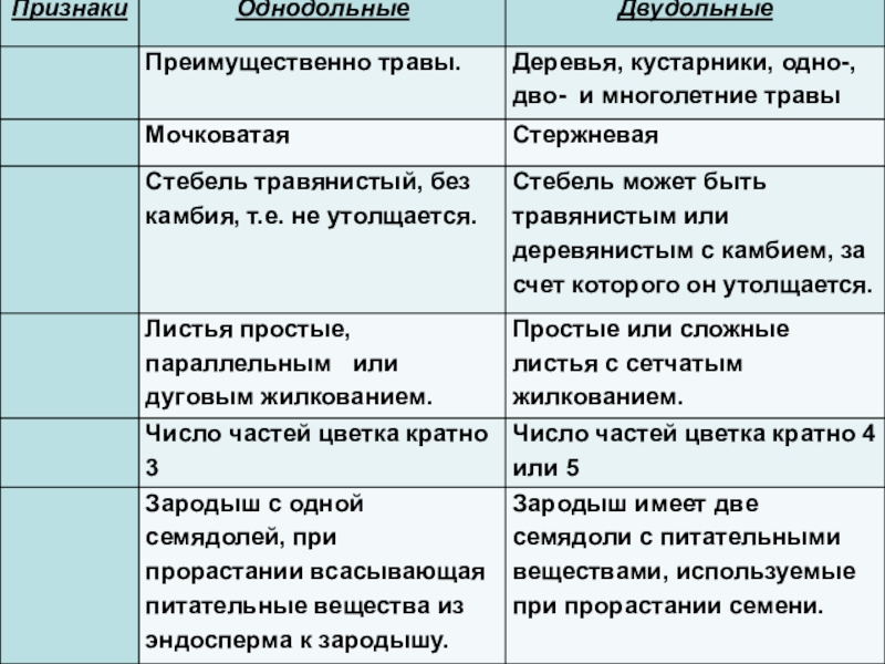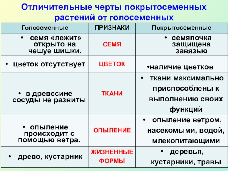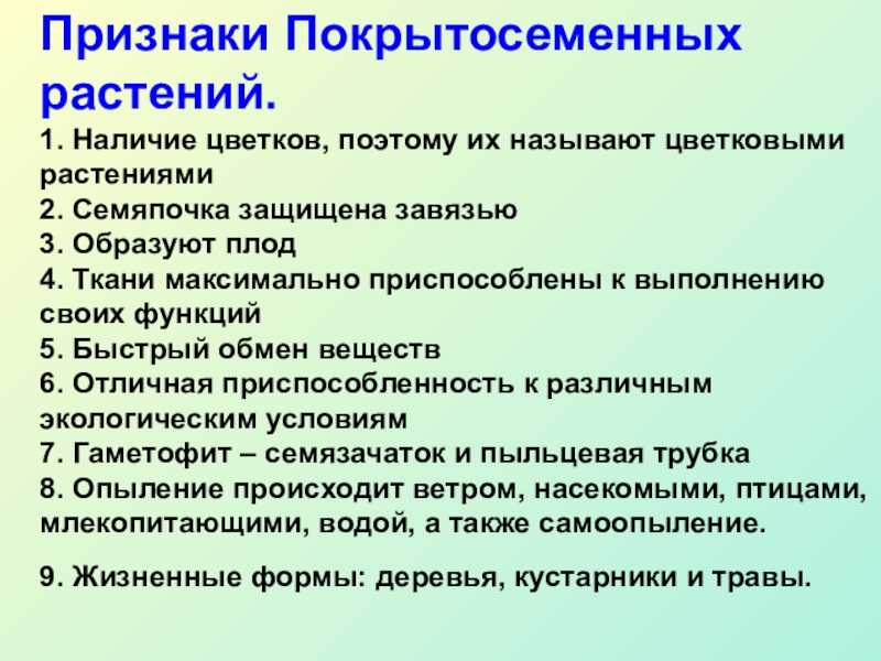 Признаки Покрытосеменных