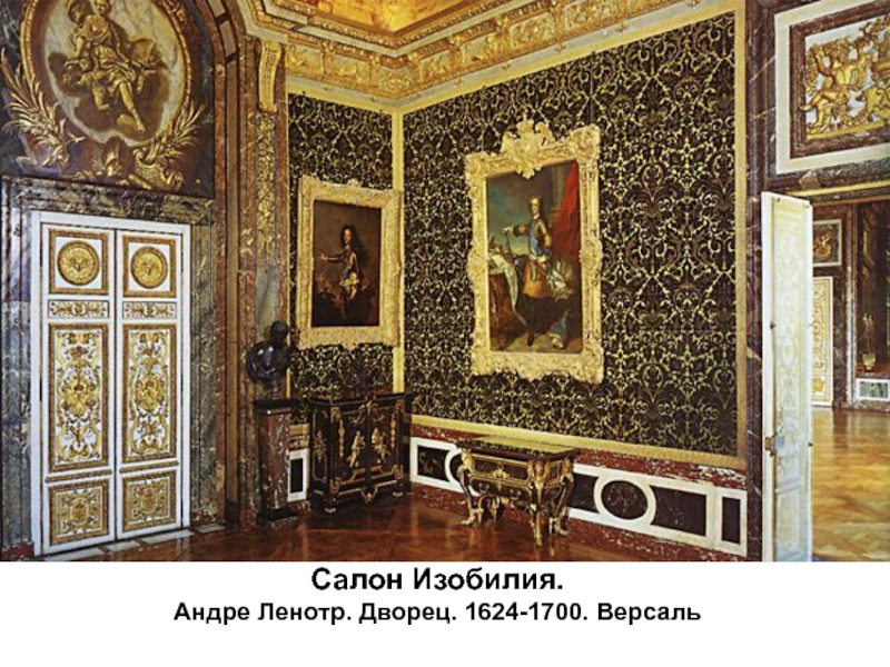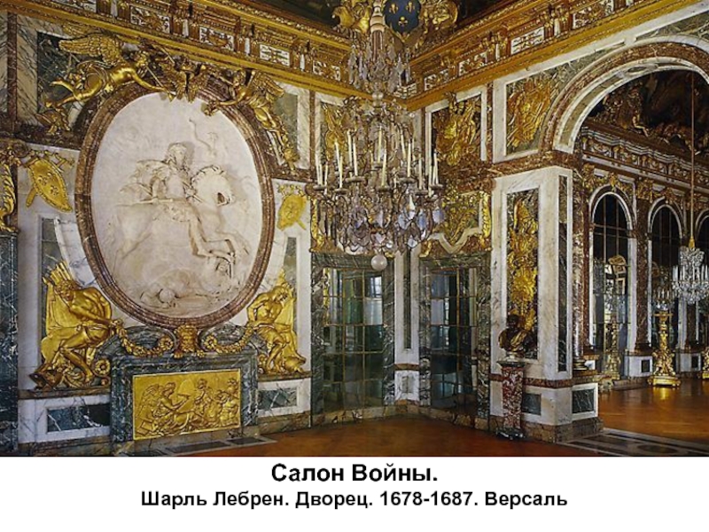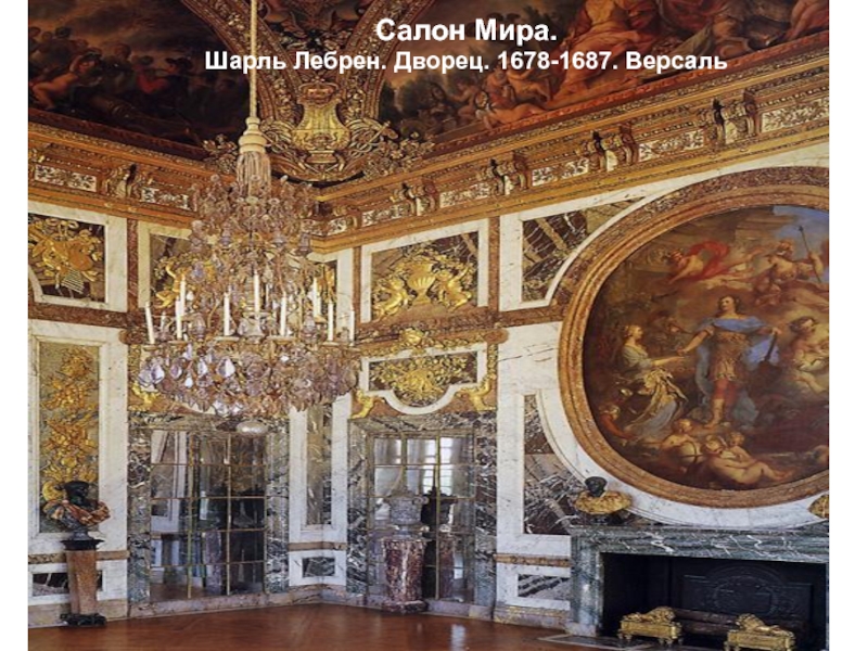 Слайд 37Золотой плафон в зеркальной галереи. Шарль Лебрен.