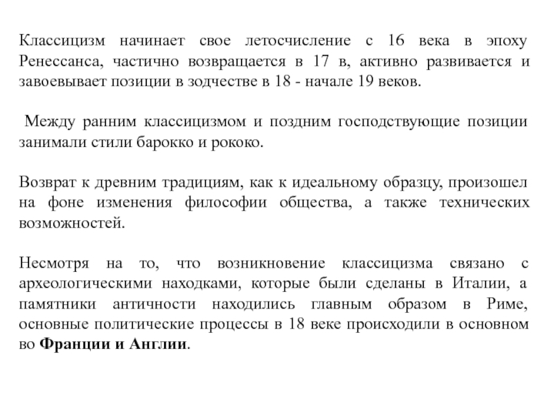 Слайд 4Классицизм начинает свое летосчисление с 16 века в эпоху Ренессанса,