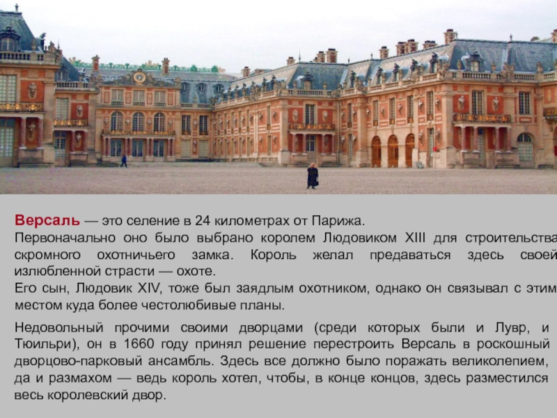 Слайд 12Версаль — это селение в 24 километрах от Парижа.