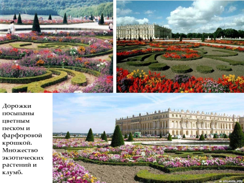 Слайд 14 К Версальскому дворцу, расположенному на возвышении (господство), сходятся