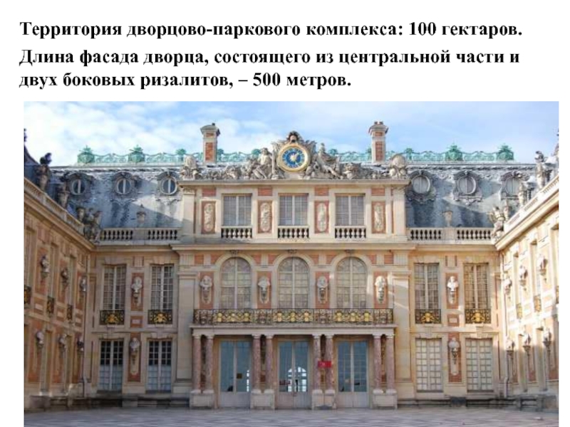 Слайд 13Территория дворцово-паркового комплекса: 100 гектаров.