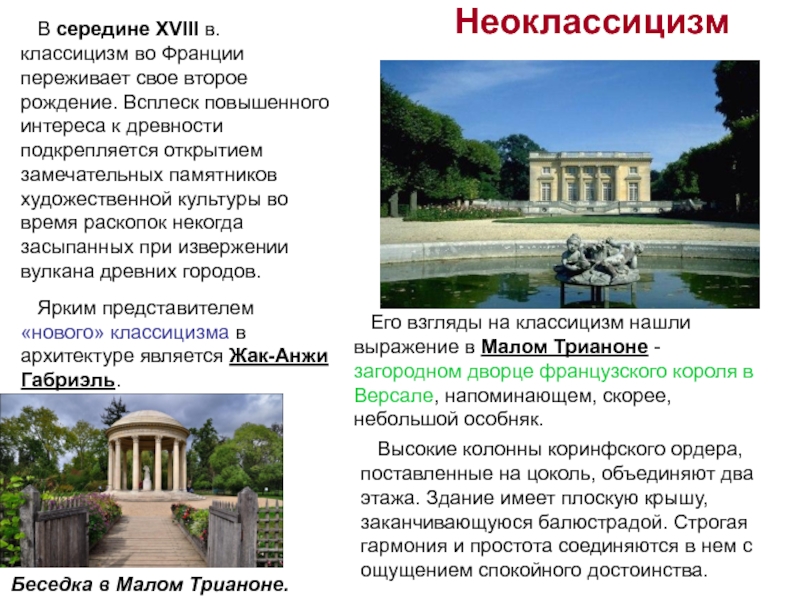 Ярким представителем «нового» классицизма в архитектуре является Жак-Анжи Габриэль.