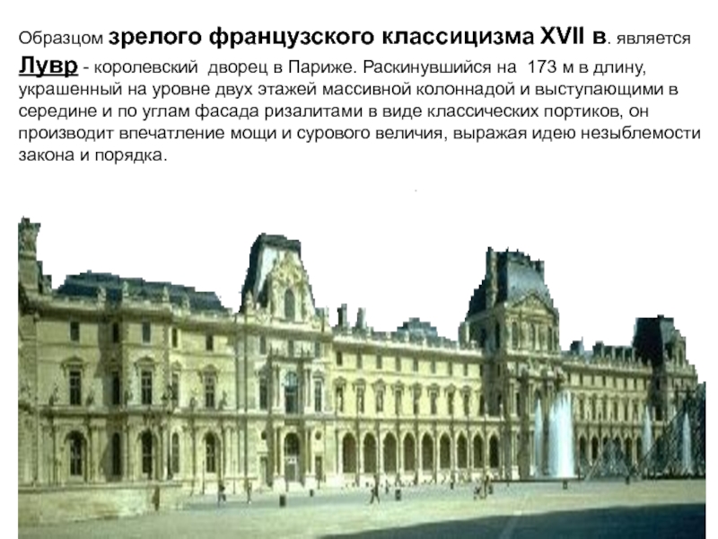 Слайд 48Образцом зрелого французского классицизма XVII в. является Лувр - королевский