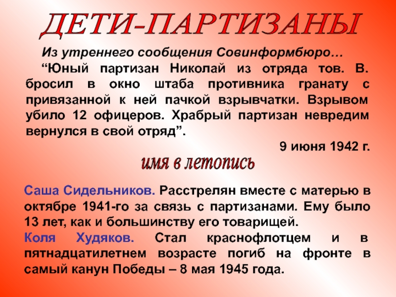 Слайд 15ДЕТИ-ПАРТИЗАНЫ