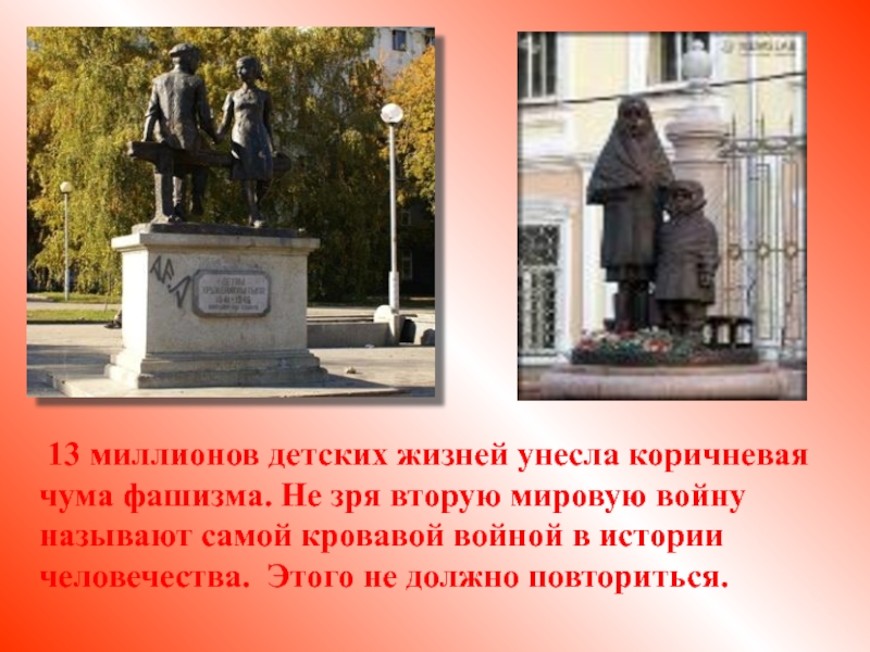 Слайд 23 13 миллионов детских жизней унесла коричневая чума фашизма. Не