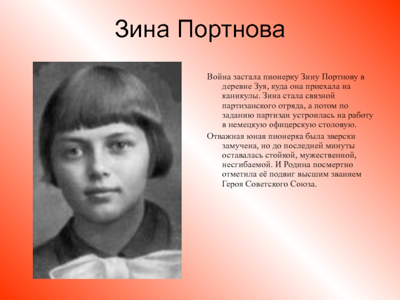 Война застала пионерку Зину Портнову в деревне Зуя, куда