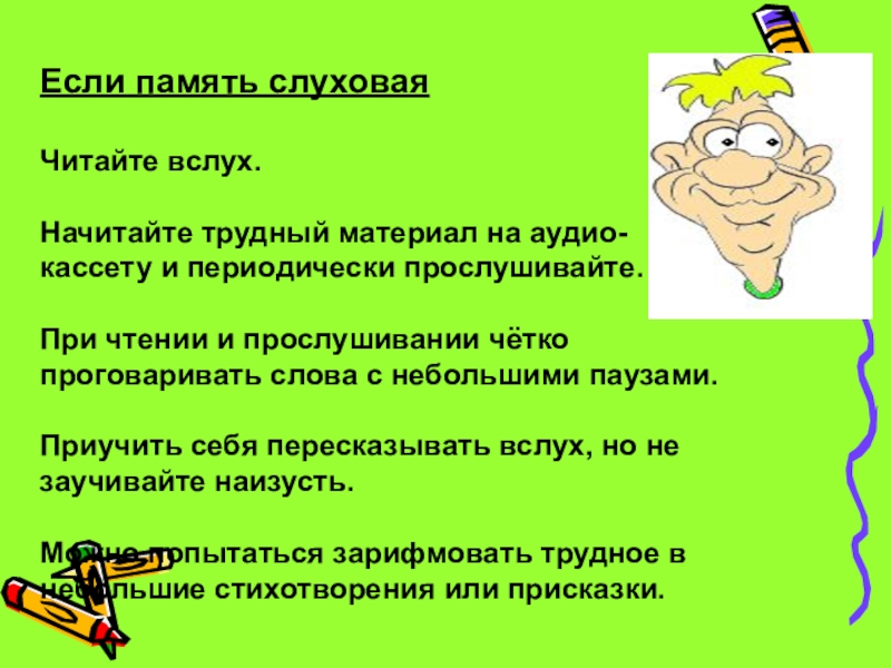 Можно попытаться зарифмовать трудное в небольшие стихотворения или присказки.