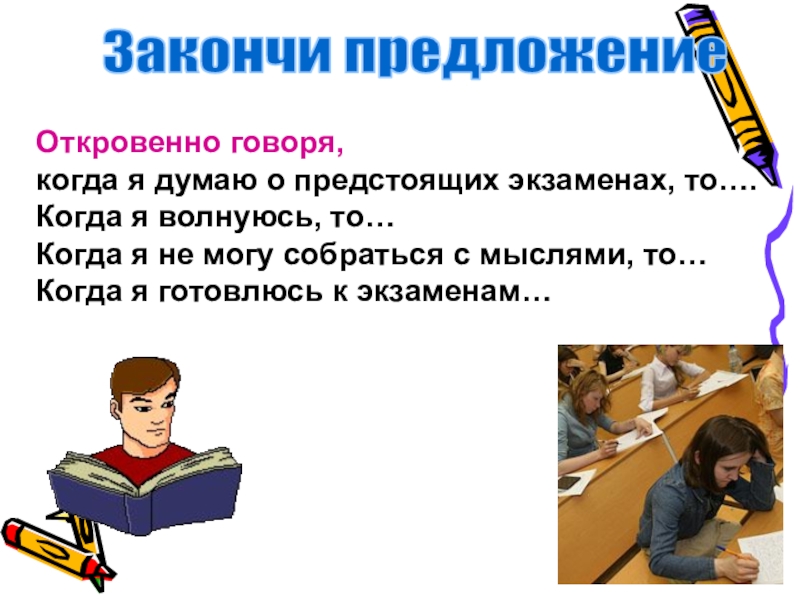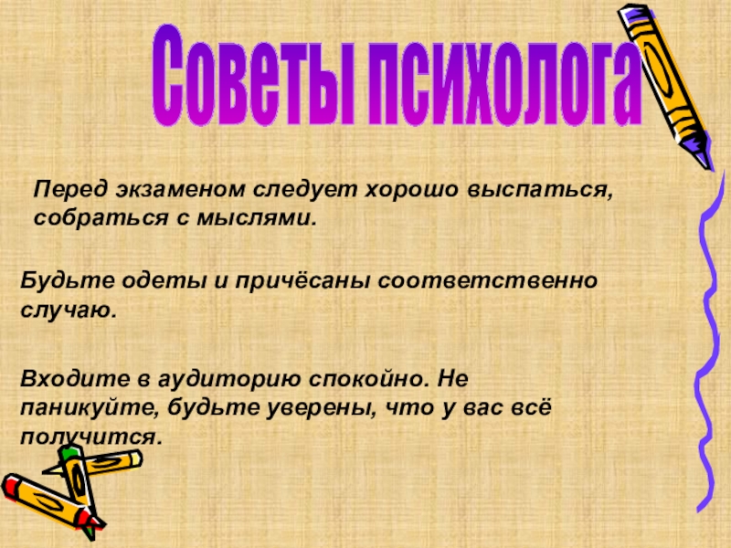 Перед экзаменом следует хорошо выспаться, собраться с мыслями.