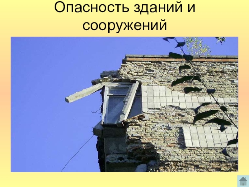 Слайд 14Невидимые невооруженным глазом опасности могут вас поджидать возле стен домов
