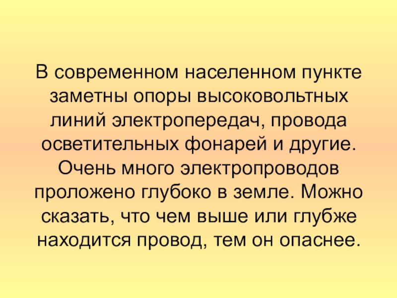 Слайд 23В современном населенном пункте заметны опоры высоковольтных линий электропередач, провода