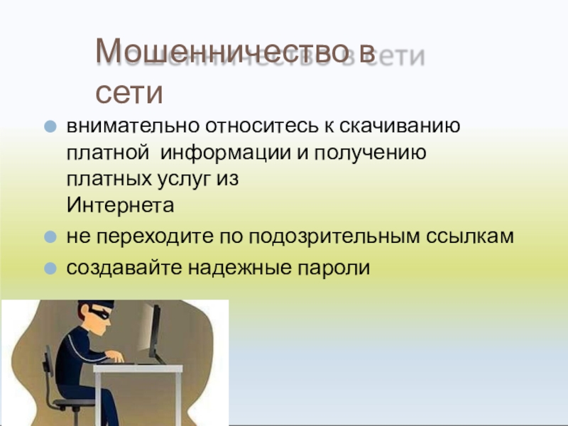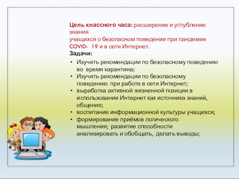 Изучить рекомендации по безопасному поведению при работе в сети Интернет;