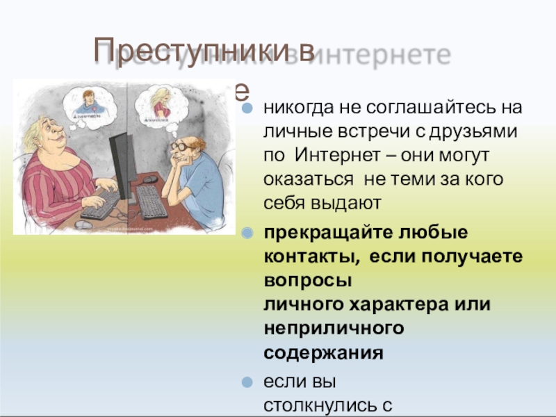 Никогда не соглашайтесь на личную встречу с людьми, с которыми………