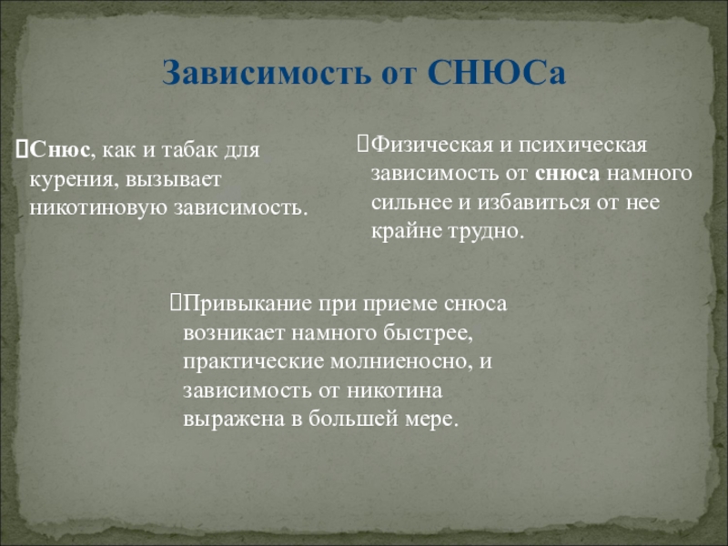 Физическая и психическая зависимость от снюса намного сильнее и избавиться от нее крайне трудно.