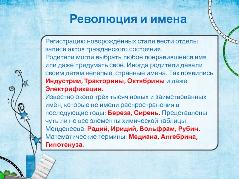 Иногда родители давали своим детям нелепые, странные имена. Так появились Индустрии, Тракторины, Октябрины и даже Электрификации.