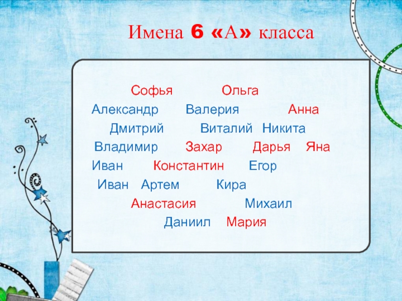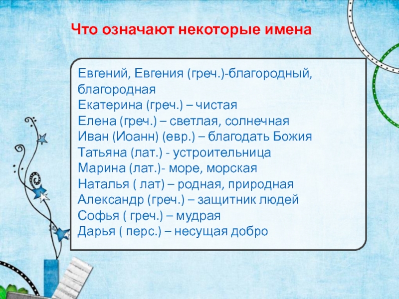 под которым он родился. И, конечно же, большое значение имеет имя, которое дают родители ребенку при рождении. Сегодня праздник наших имен.