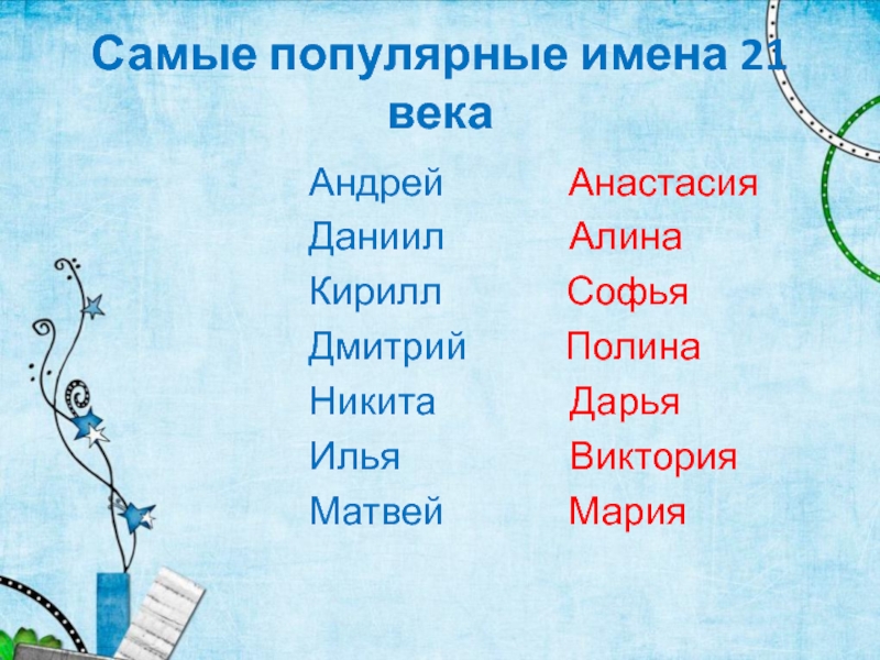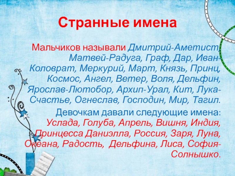 Родители могли выбрать любое понравившееся имя или даже придумать своё.