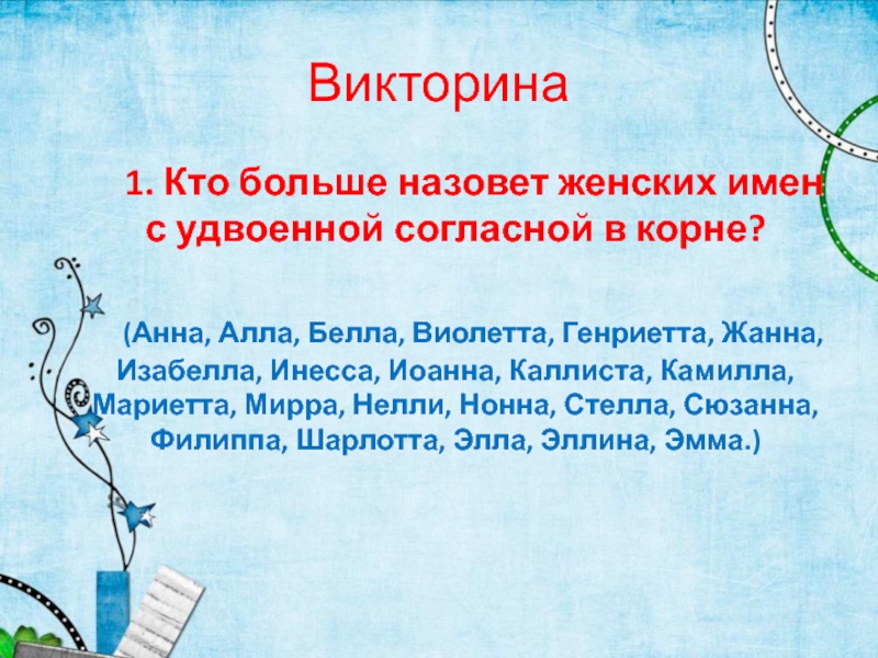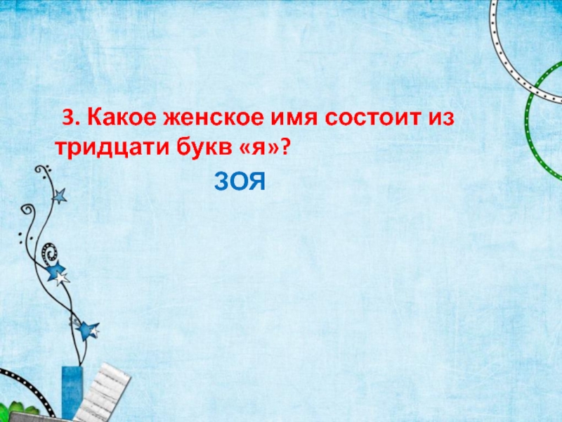 Слайд 27 3. Какое женское имя состоит из тридцати