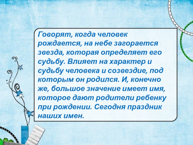 Слайд 2Говорят, когда человек рождается, на небе загорается звезда, которая определяет