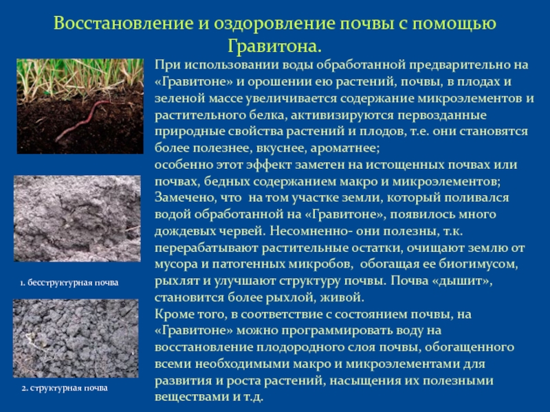 Слайд 43Восстановление и оздоровление почвы с помощью Гравитона.