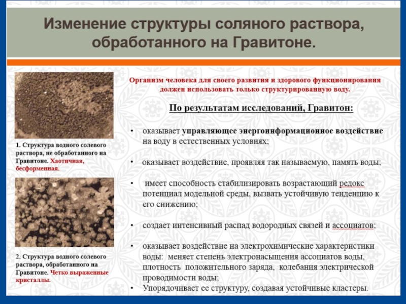 Вода, имеющая упорядоченную структуру - восстанавливает и оздоравливает.
