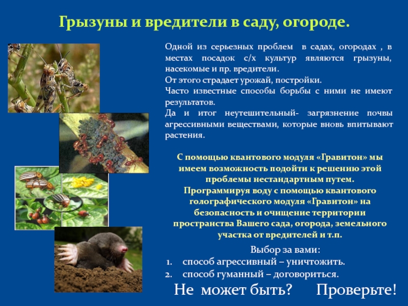 Программируя воду с помощью квантового голографического модуля «Гравитон» на безопасность и очищение территории пространства Вашего сада, огорода, земельного участка от вредителей и т.п.