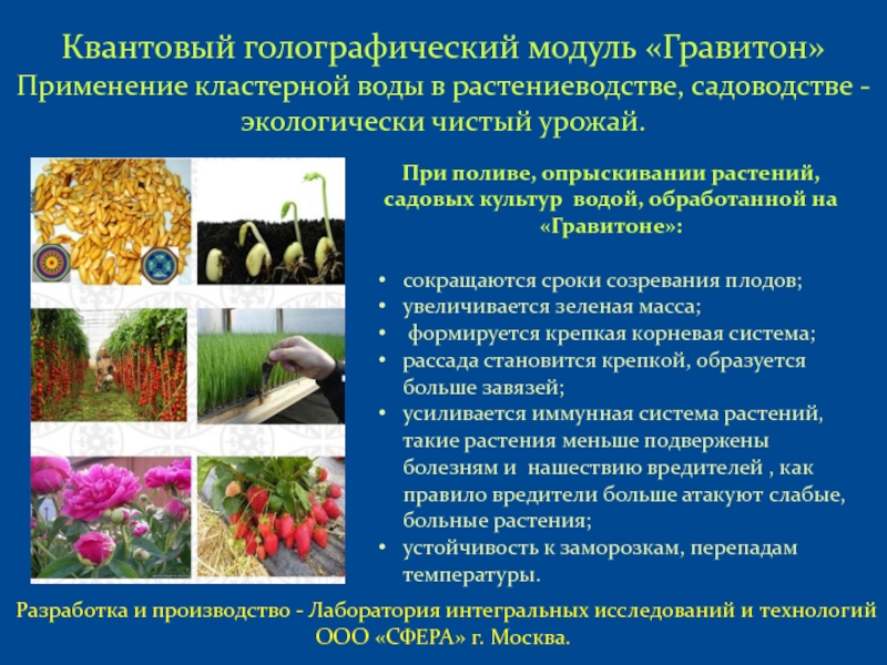 Слайд 42Выращивание экологически чистого урожая с помощью «Гравитона»