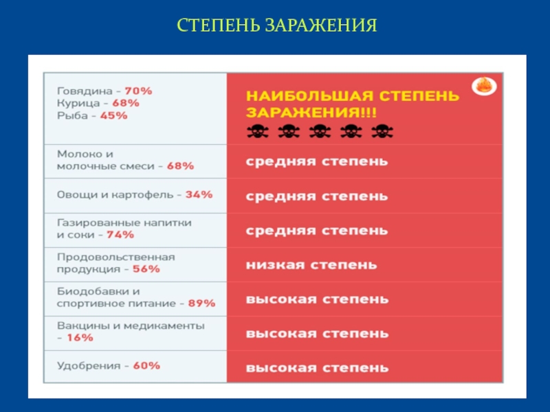 Более 50% импортной пищевой продукции и более 80% кормов содержит ЗЕРНО или продукты переработки ГМ Сои, кукурузы, рапса, овощей и фруктов.
