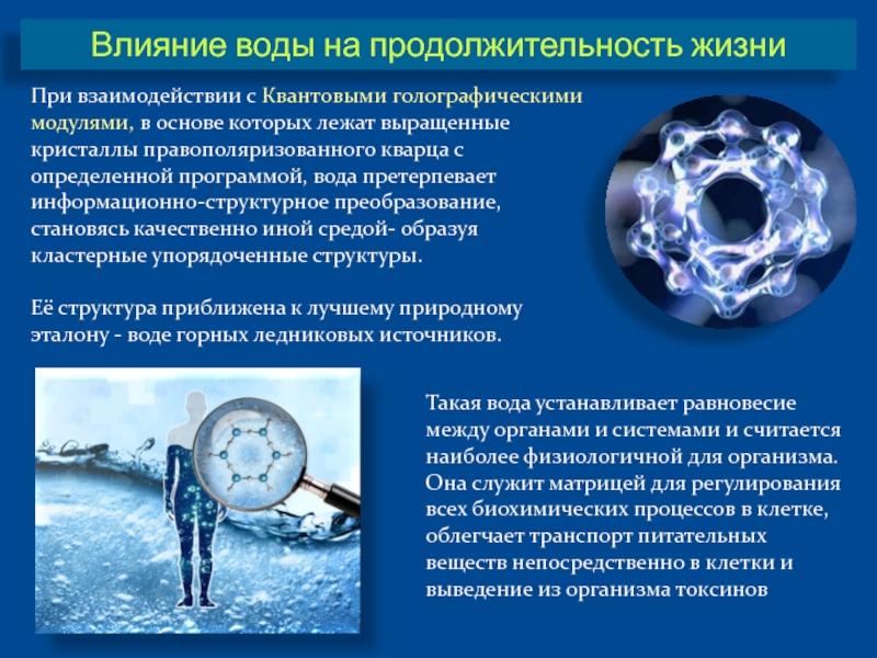 с воды и жидкостных сред, и более того, дают возможность программировать воду на те потребности, которые так нам необходимы.
