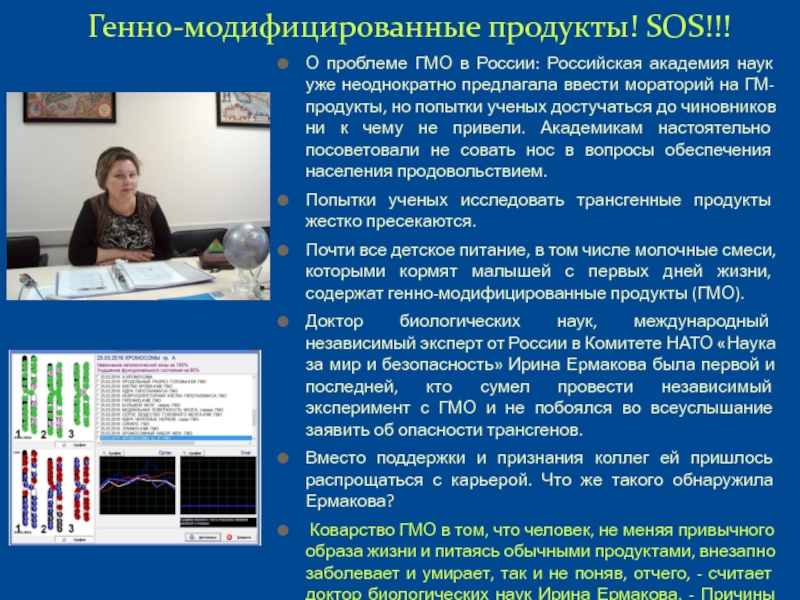 Коварство ГМО в том, что человек, не меняя привычного образа жизни и питаясь обычными продуктами, внезапно заболевает и умирает, так и не поняв, отчего, - считает доктор биологических наук Ирина Ермакова. - Причины кроются в генных мутациях, которые провоцируют ГМО.
