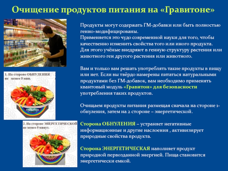 Вам и только вам решать употреблять такие продукты в пищу или нет. Если вы твёрдо намерены питаться натуральными продуктами без ГМ-добавок, вам необходимо применять квантовый модуль «Гравитон» для безопасности употребления таких продуктов.