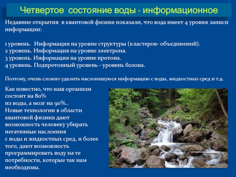 Недавние открытия в квантовой физике показали, что вода имеет 4 уровня записи информации: