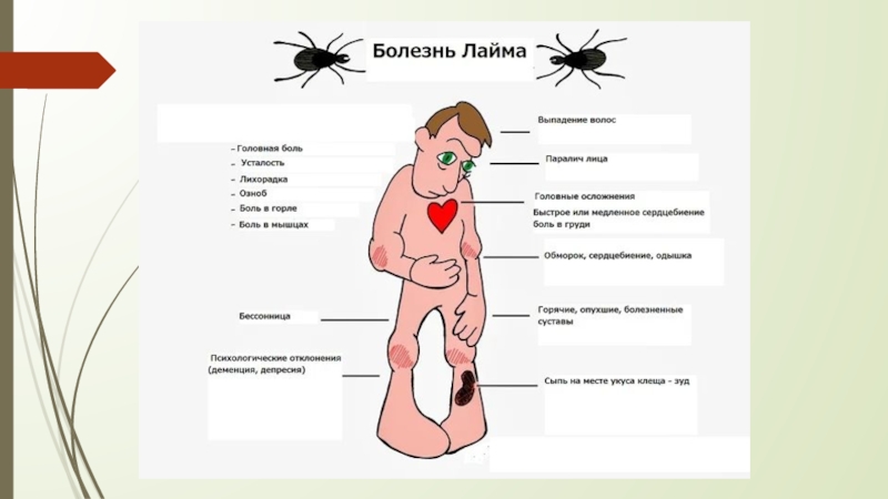 Слайд 2Болезнь Лайма (синонимы: Лайм-боррелиоз, иксодовый клещевой боррелиоз, клещевой боррелиоз, боррелиоз