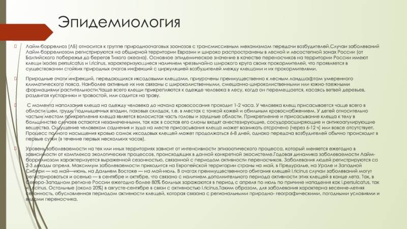 Лайм-боррелиоз (ЛБ) относится к группе природноочаговых зоонозов с трансмиссивным механизмом