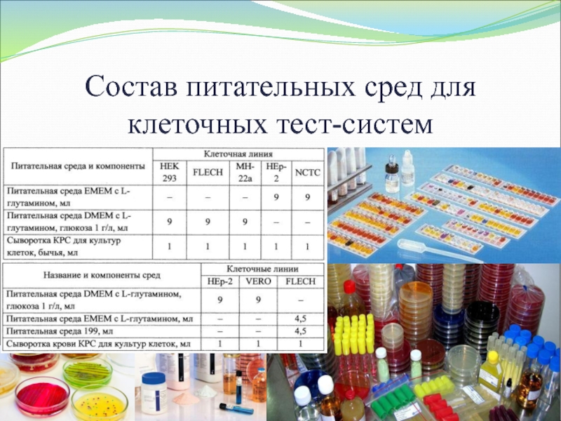 5–20% биологических жидкостей, например, фетальной (эмбриональной) бычьей сыворотки, сыворотки крови жеребцов или телят для обеспечения клеток: