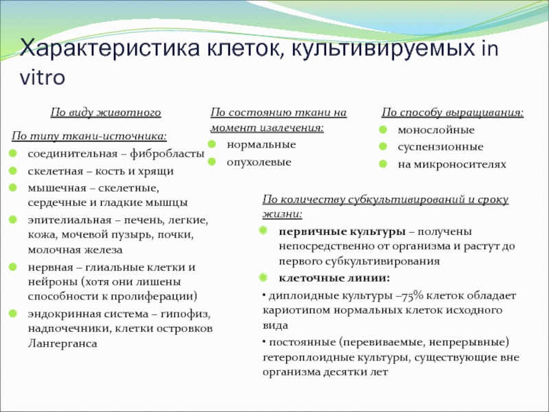 По количеству субкультивирований и сроку жизни: