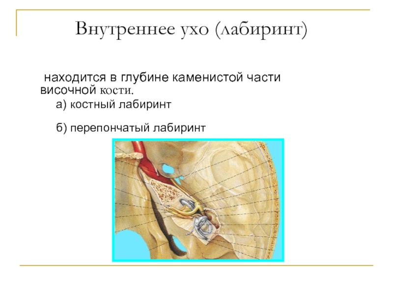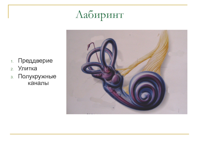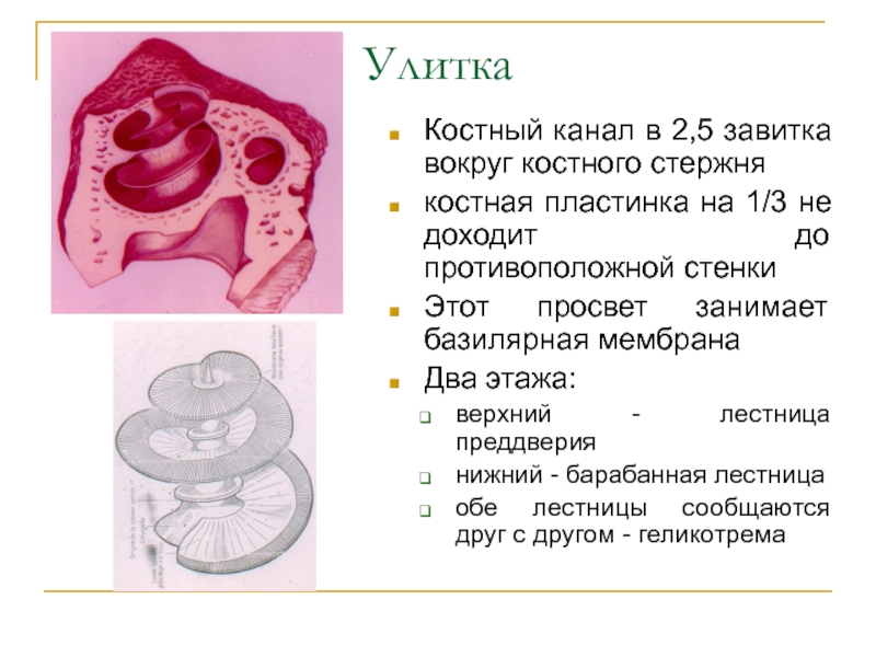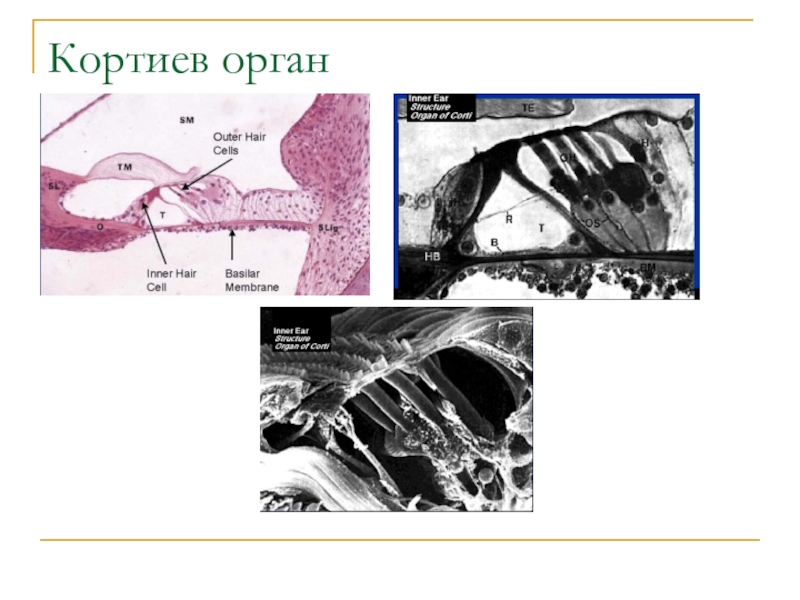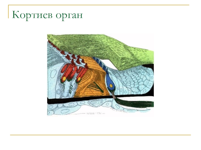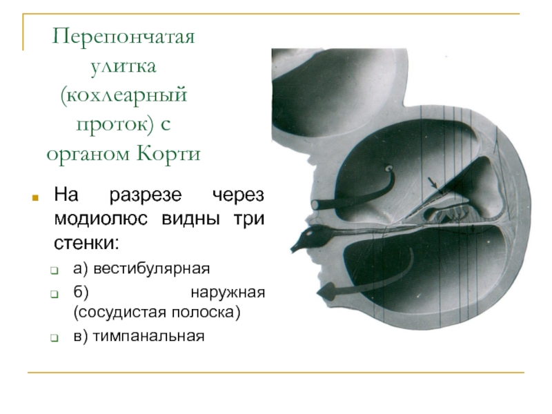 Слайд 8Перепончатая улитка (кохлеарный проток) с органом Корти